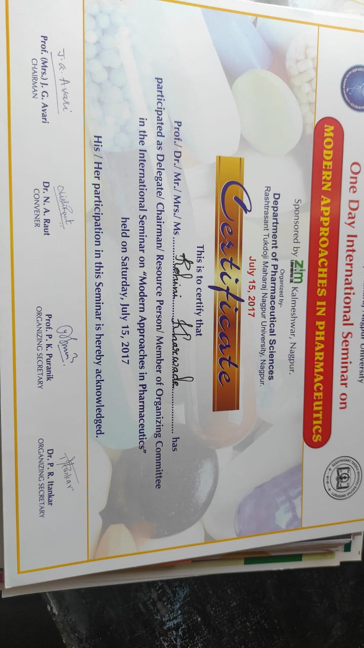 One-day International Seminar on Modern Approaches in Pharmaceutics on 15/7/2017 |